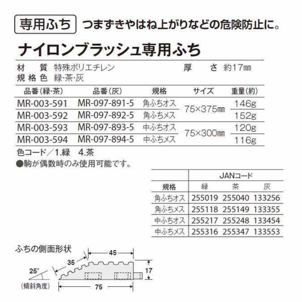 玄関マット 屋外 業務用 土砂落とし用 ナイロンブラッシュ専用ふち 角ふちメス 75×375mm テラモト MR-097-892-5