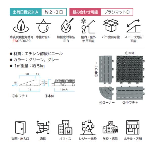 玄関マット サポートマット 中フチ+ 75×150mm 屋外 屋内 排水 ミヅシマ工業