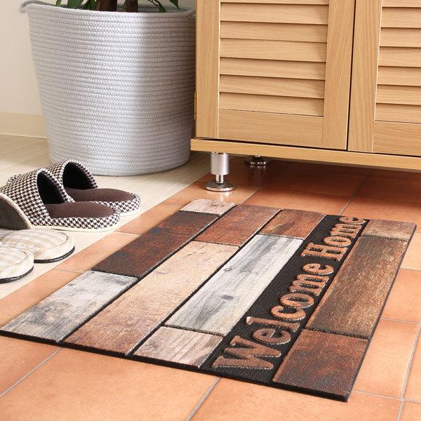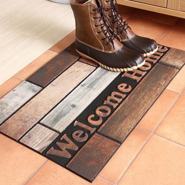 玄関マット 屋外 業務用 吸水 泥落とし 屋内 おしゃれ 洗える おしゃれ ドアマット 滑り止め ヴィンテージテイスト 木材風 かわいい welcome 新生活 送料無料
