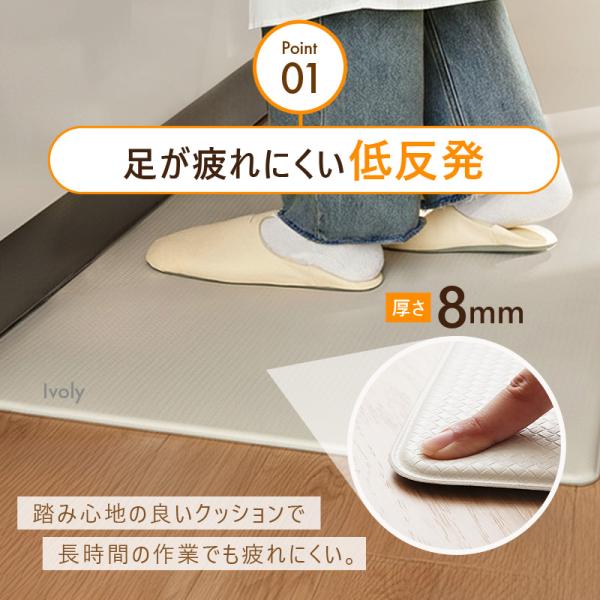 【Yahoo1位】キッチンマット 拭ける 60×240 cm 足がラク 疲れにくい シンプル 無地 キッチン PVC 台所 マット 低反発 ロング 滑り止め 幅広