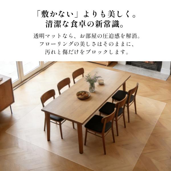 透明 ダイニングマット 拭ける 江戸間6畳 261×352cm 大判 大きめ | クリアマット おしゃれ 防水 防カビ 撥水 傷防止 床暖房対応 PVC カット可能 滑り止め