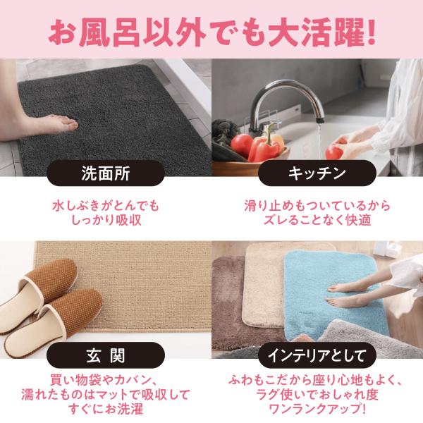 バスマット 速乾 大判 吸水 おしゃれ ふわふわ 滑り止め付 足拭きマット お風呂マット 風呂 浴室 足 ふき マット 玄関マット 北欧 Lサイズ