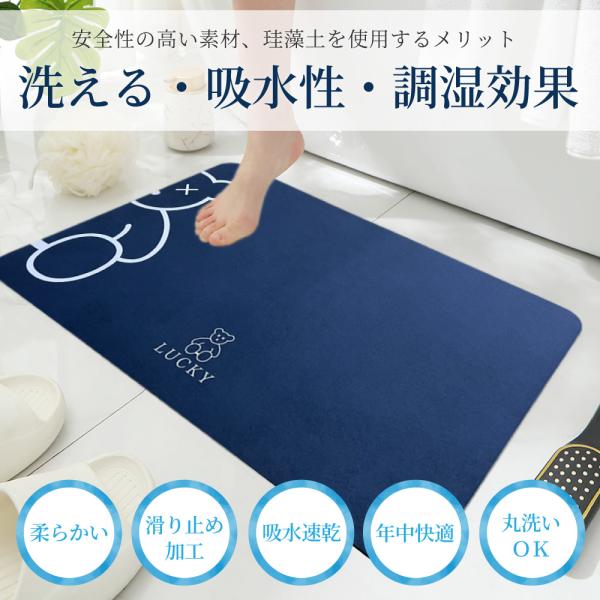 バスマット 珪藻土 マット 2サイズ 柔らか 洗える ソフト 珪藻土マット 割れない 60cm 選べる6種 速乾 瞬間吸水 抗菌 防カビ 滑り止め 風呂マット 足拭き