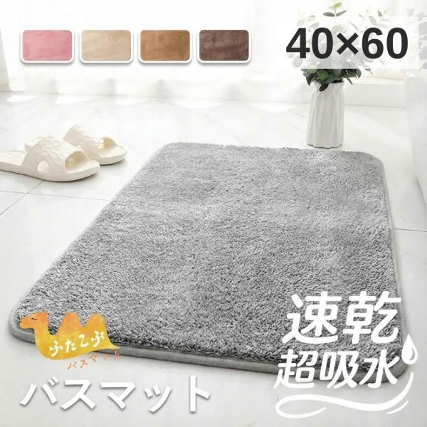 バスマット お風呂 玄関 マット 60×40cm 吸水 速乾 洗濯 干し 滑り止め 丸洗い 室内 新生活