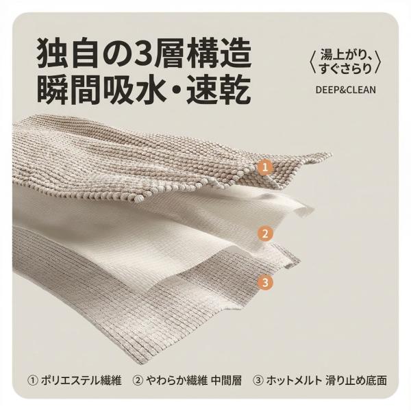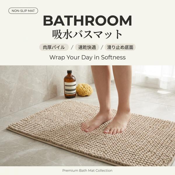 バスマット 大判 速乾 吸水 40×60cm 洗える 滑り止め 厚手 足ふきマット シンプル おしゃれ