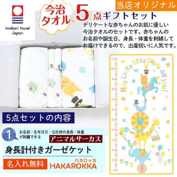 今治タオル 5点セット アニマルサーカス 身長計付きガーゼケット ハカロッカ 日本製 名入れ ガーゼケット ガーゼタオル バスタオル ギフト