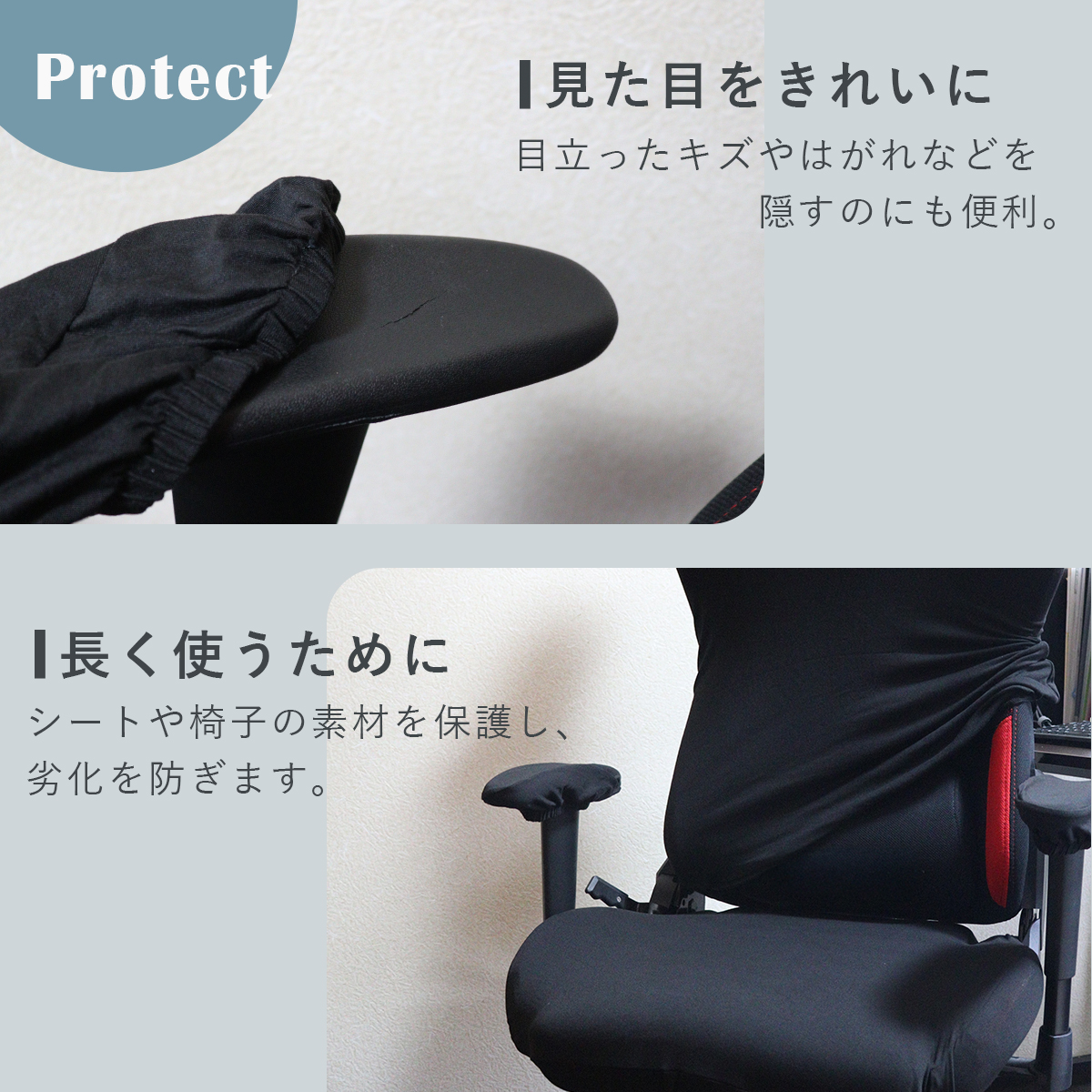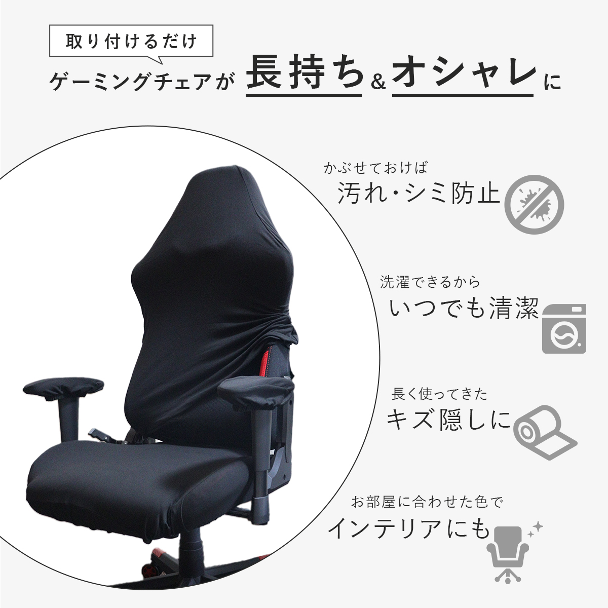 ゲーミングチェア カバー 椅子 ゲームチェア ワークチェア 背もたれ 座面 肘置き 保護 傷隠し 汚れ防止 伸縮性 黒 白