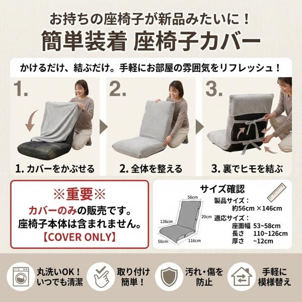 座椅子カバー ロング カバー パットタイプ 厚手 冬 洗える おしゃれ 56x126 ふわふわ マイクロファイバー ビスキュ