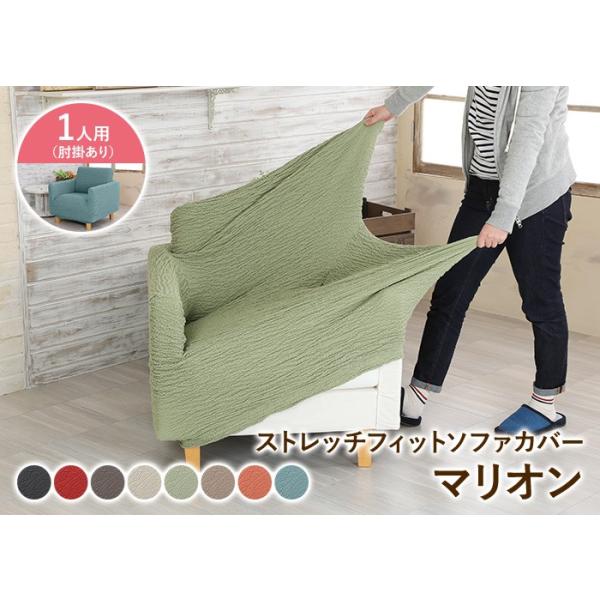 ソファーカバー 1人掛け 肘あり 無地 マリオン ソファーカバー フィット ストレッチ 伸縮 送料無料 【あすつく】