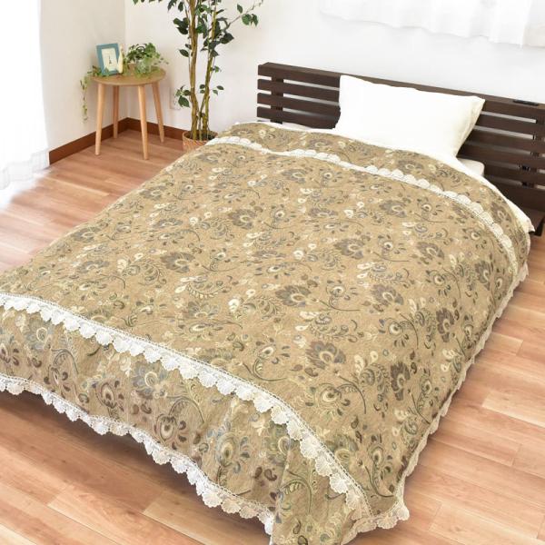 洗えるマルチカバー 正方形 2畳用 190×190cm レース付き ジャガード織 花柄 マルチカバー ドレープ