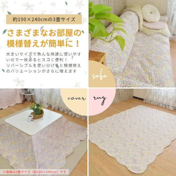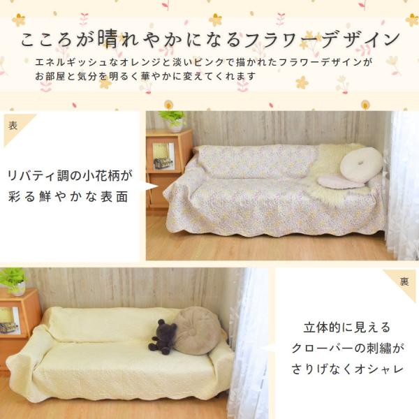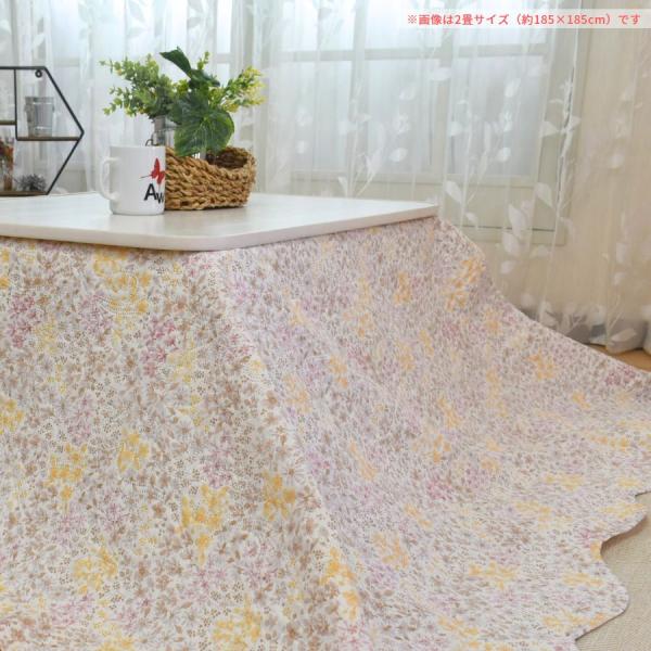 マルチカバー 洗える 花柄 長方形 ソファ リバーシブル 185×185cm 2畳 2帖 ラグ ベッド おしゃれ お洒落 オレンジ 目隠し こたつ リバティ調 小花柄 かわいい