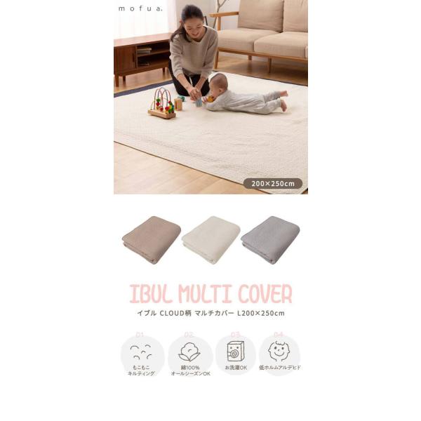 マルチカバー イブル キルティングマット クラウド柄 綿100% Lサイズ 200cm×250cm CLOUD柄 モフア オールシーズン ラグ ベッドカバー 3畳 1年保証 送料無料