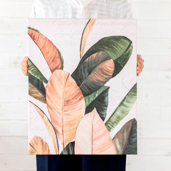 アートパネル リーフ ゴムの木 キャンパス 幅40cm 高さ50cm 正方形 グリーン ボタニカル 壁掛け インテリア おしゃれ 北欧 南国 ウォールデコレーション 66974