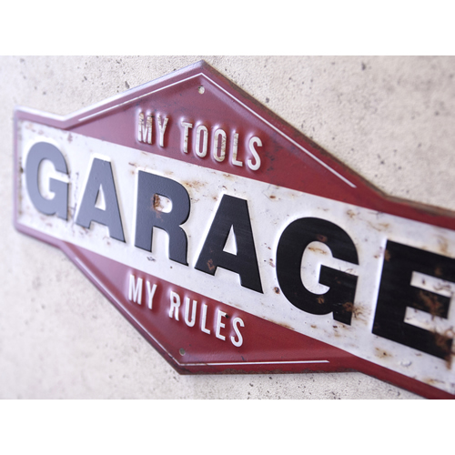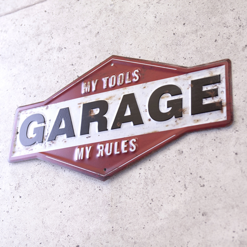 送料無料 ブリキ看板 アメリカン ガレージ インテリア おしゃれ レトロ 壁掛け 男前 雑貨 アンティーク GARAGE MY TOOLS エンボスプレート メタル アメリカ雑貨