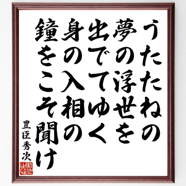 豊臣秀次の短歌・俳句「うたたねの夢の浮世を出でてゆく、身の入相の鐘をこそ聞け」手書き書道色紙額/受注後の毛筆直筆