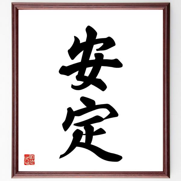 二字熟語「安定」手書き書道色紙額/受注後の毛筆直筆