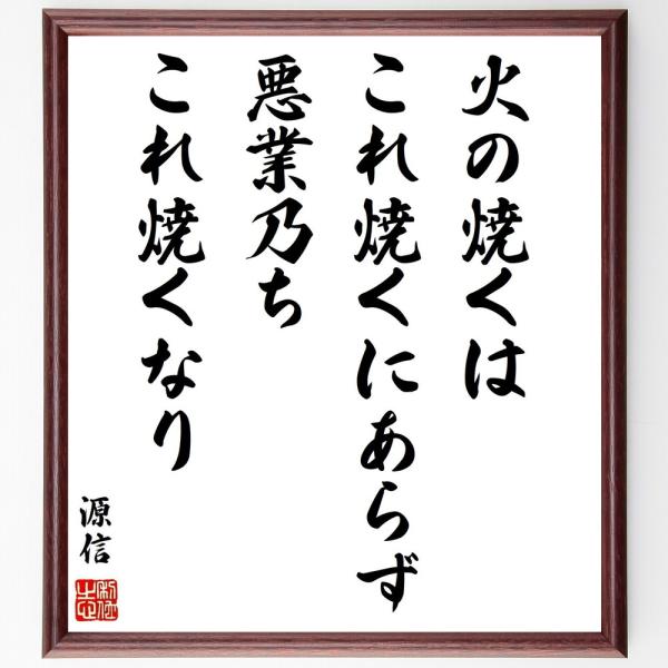 源信の名言「火の焼くはこれ焼くにあらず、悪業乃ちこれ焼くなり」手書き書道色紙額/受注後の毛筆直筆
