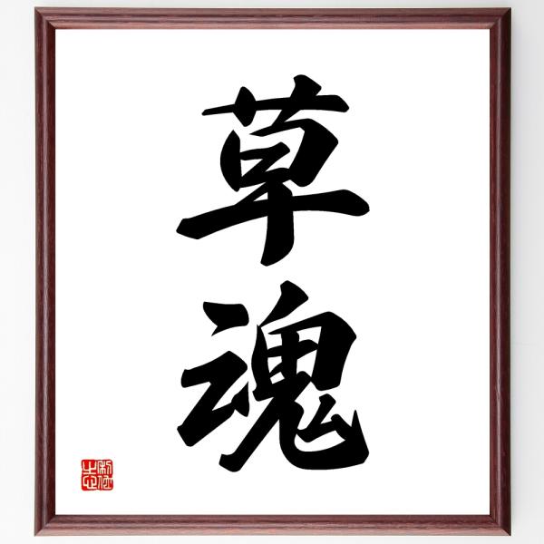 二字熟語「草魂」手書き書道色紙額/受注後の毛筆直筆