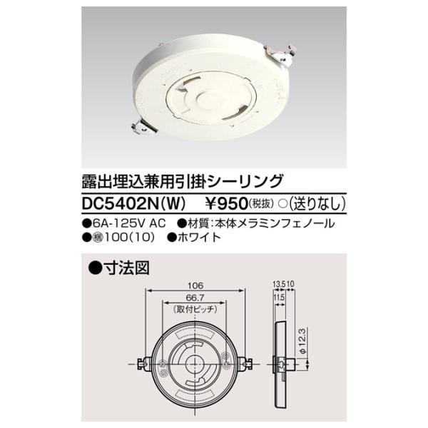 露出埋込兼用引掛シーリング DC5402N(W) 東芝ライテック (DC5402NW)
