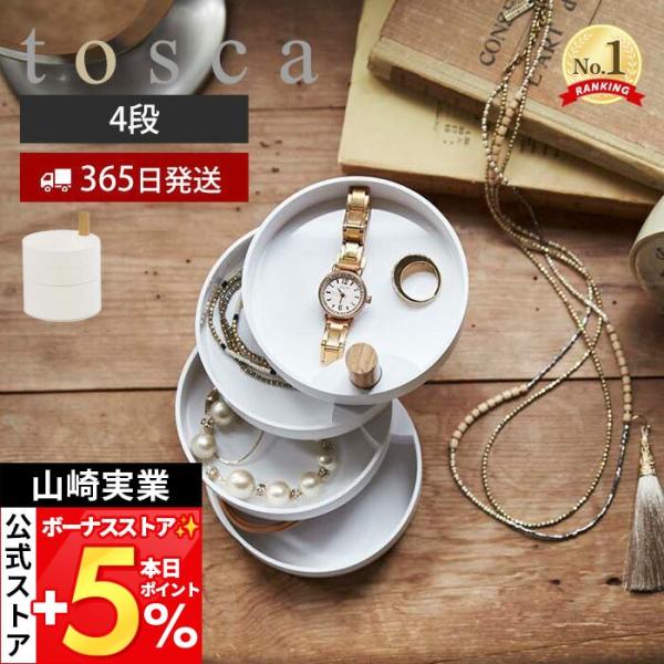 山崎実業 公式 トスカ アクセサリートレー 収納 tosca ケース 回転式 円形 ボックス アクセサリー 指輪 ピアス ネックレス 鍵 3408