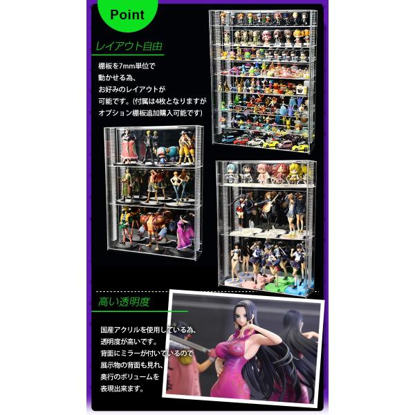【 可動棚 置き式 】アクリルコレクションケース/フィギュアケース/クリア L フロントオープン式 幅45cm/奥行13cm/高さ60cm 棚板4枚付