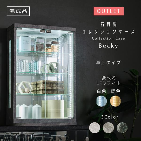 アウトレット 石目調 コレクションケース 卓上型 LEDフィギュアケース 幅50cm ガラス棚 小型 コレクションボード ガラスケース ベッキー
