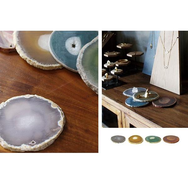 ストーン トレー 天然石 アクセサリープレート 什器 コースター ラウンド ディスプレイ スライス 約8cm〜10cm トレイ 小物置き 収納 ネイルパレット