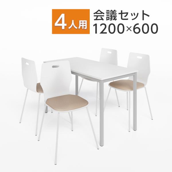 法人様限定 ミーティングテーブルセット 4人用 フリーアドレスデスク 会議用テーブル 1200×600 + エルモサ ミーティングチェア 4脚セット