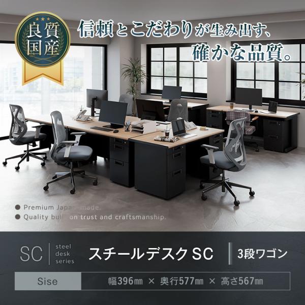 法人様限定 日本製 スチールワゴンSC デスクワゴン サイドワゴン 3段 鍵付 オールロック錠 幅396×奥行577×高さ567mm デスク下ワゴン デスク下収納