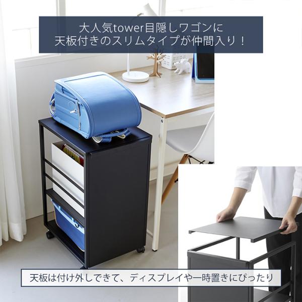 山崎実業 公式 タワー 目隠しワゴン スリム 天板付き tower ランドセルラック 高さ調整 収納ラック キッチン ファイル収納 キャスター 8470