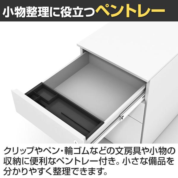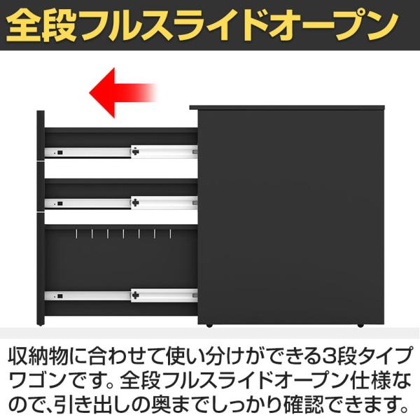 法人様限定 LASHデスク サイドワゴン スチールワゴン 3段 シリンダー錠 ダブルサスペンション キャスター付き 幅400×奥行500×高さ571mm