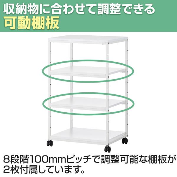 プリンターワゴン プリンター台 スチール 4段 キャスター付き 可動棚 幅620×奥行500×高さ1002mm