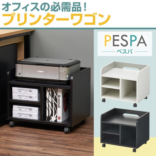 法人送料無料 ペスパ プリンターワゴン おしゃれ プリンター台 木製 A4 可動棚付き 机下収納 デスク下収納 キャスター付き 幅540×奥行420×高さ438mm
