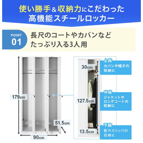 スチールロッカー 4人用 オフィス 更衣室 鍵付き 4列 ホワイト 白 ブラック 黒