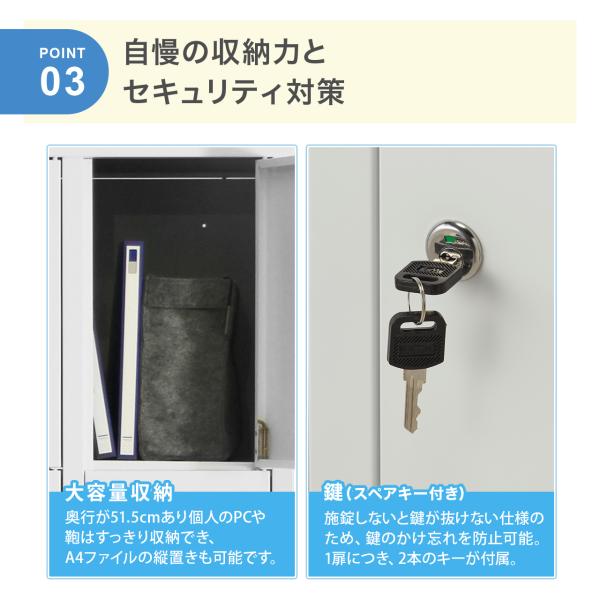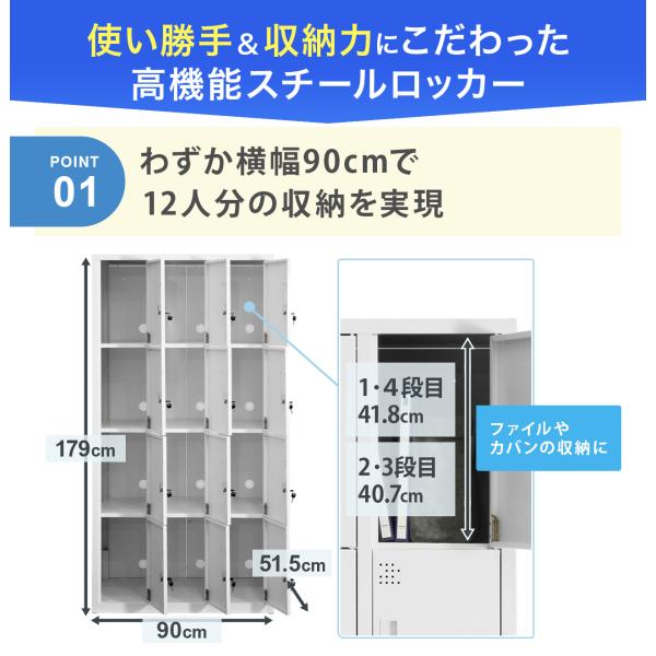 スチールロッカー 12人用 オフィス 更衣室 鍵付き 4列 3段 ホワイト 白 ブラック 黒