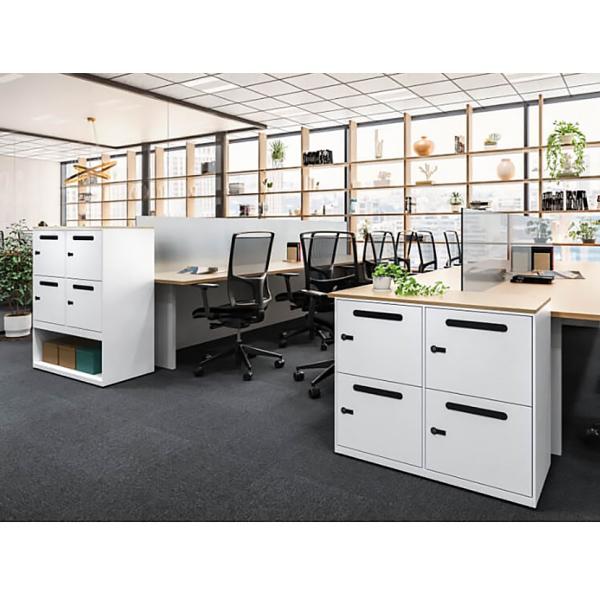 法人様限定 パーソナルロッカー 4人用 2列2段 ダイヤル錠 開口付き 棚板付き スチールロッカー メールロッカー 幅900×奥行450×高さ760mm 完成品