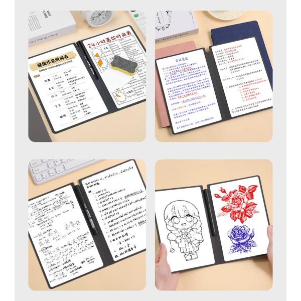 ホワイトボードノートブック ノート型ホワイトボード A5サイズ 持ち運び ポータルブル 繰り返し使える おしゃれ フェイクレザー カバー付き 白板 ミ