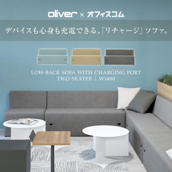コンセント付きソファ オリバー×オフィスコム ローバック 2人掛け 布張り 幅1400×奥行600×高さ720mm オフィスソファ ラウンジソファ ファブリック 充電 電源