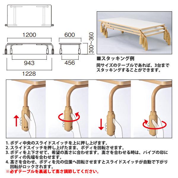 保育園 テーブル 幼稚園 机 高さ調節 E-ESF-1260 幅1200x奥行600x高さ300・330・360mm 角型 キッズテーブル 子供用テーブル 長机 学童保育 塾 学童保育 塾