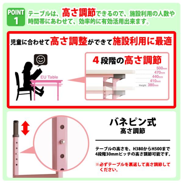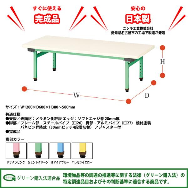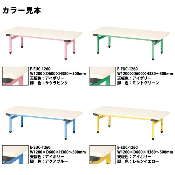 保育園 テーブル 幼稚園 机 折りたたみ 高さ調節 E-EUC-1260 幅1200x奥行600x高さ380〜500mm キッズテーブル 子供用テーブル 長机 学童保育 塾 学童保育 塾
