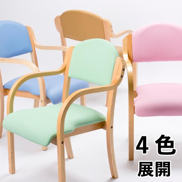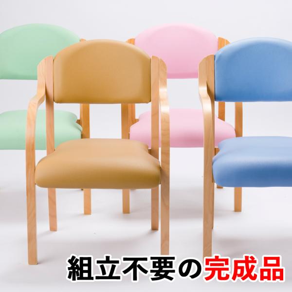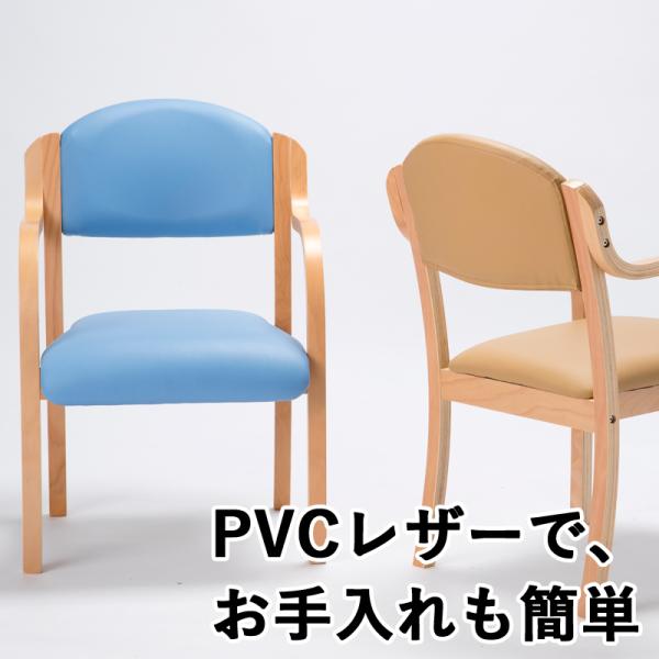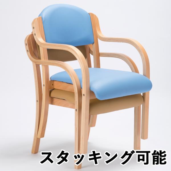 多目的チェア 2脚SET コミュニティチェア 木製チェア アームチェア ダイニングチェア 介護椅子 曲木 高齢者用 福祉施設 食堂 デイサービス PVC 合成皮革 完成品