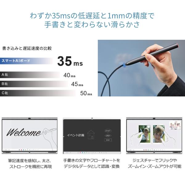 電子ホワイトボード スマートAIボード 電子黒板 高解像度 手書き認識 画面共有 4Kカメラ・マイク・スピーカー内蔵 Windows10 i5 Web会議 ディスプレイ ZOOM