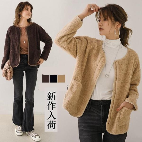 ボアジャケット ボアコート ショート丈 ボア コート レディース 可愛い 出かけ OL 通勤 ふわふわ 40代 30代 20代 ゆったり 暖かい お洒落 防寒 軽量