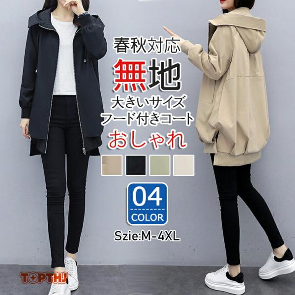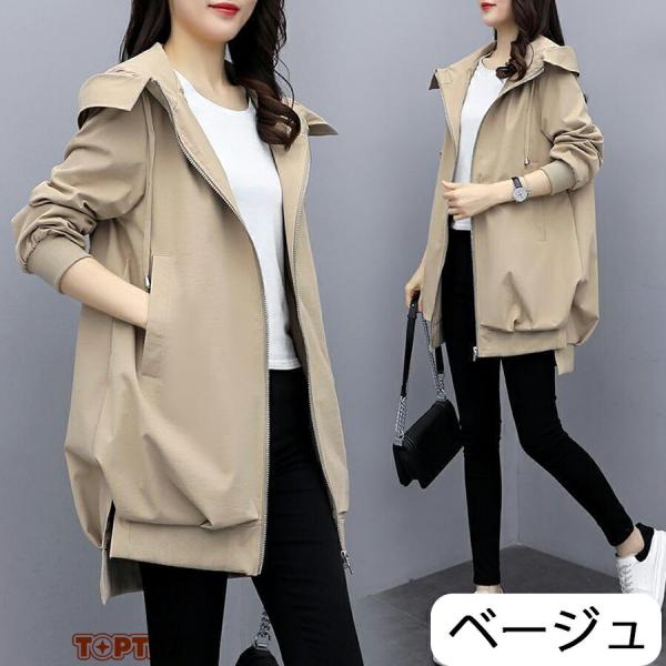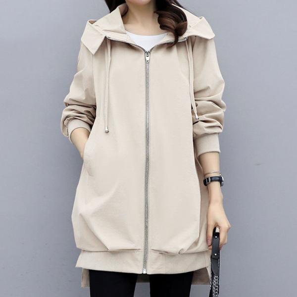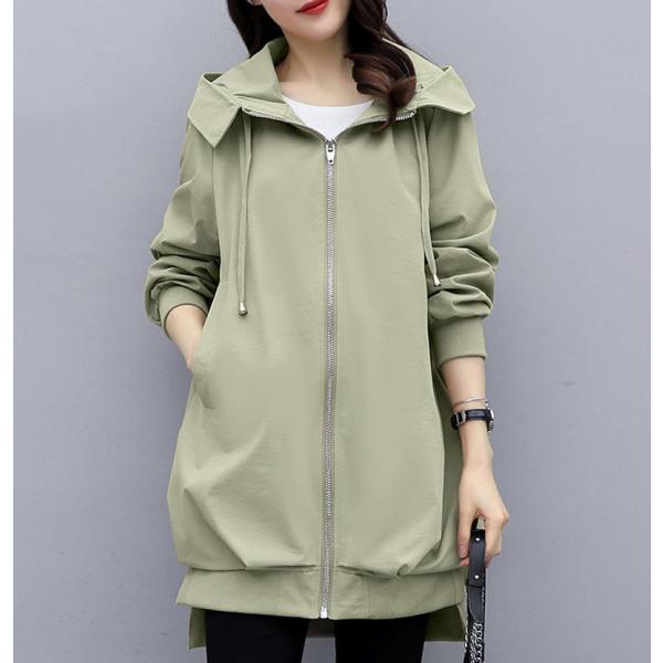 フード付きコート コート レディース 春夏 8分丈 長そで 春 ジャンパー コーデ 秋 羽織り ファスナー 体型カバー 長め 無地 カーキ ブラック アイボリー =