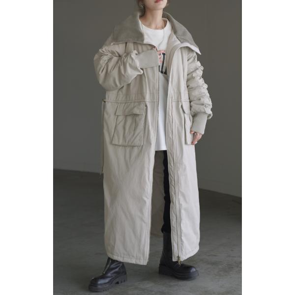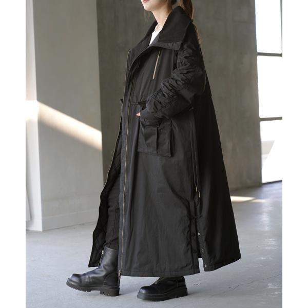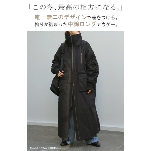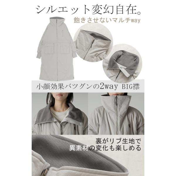 コート 中綿 ロング レディース アウター 2way 無地 長袖 リブ タートルネック ハイネック ロングコート