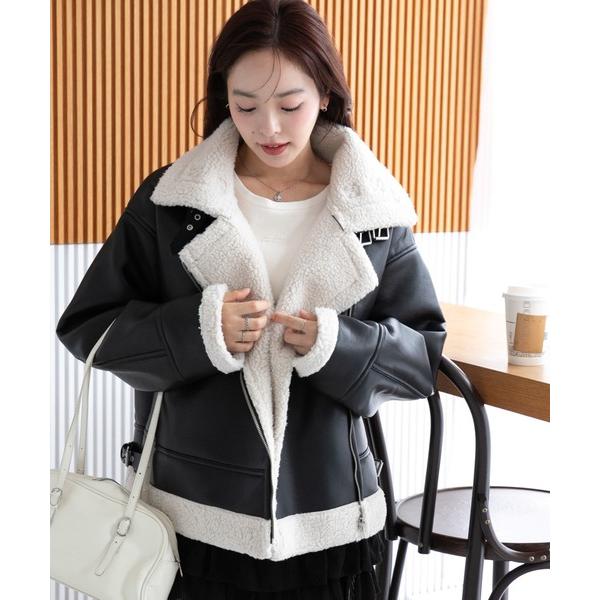 ムートンコート ボアコート WEGO/ムートンタッチボアフライトジャケット レディース