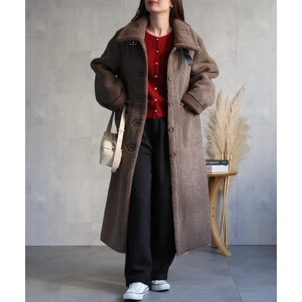 ムートンコート ボアコート シングルブレスト テディベアコート /ムートンタッチ/冬アウター/ ロング丈 レディース