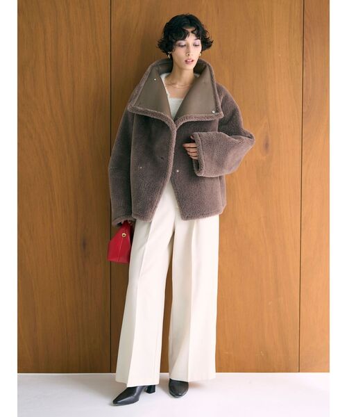 ムートンコート ボアコート 「REVIVAL」フェイクムートンスタンドカラーコート レディース