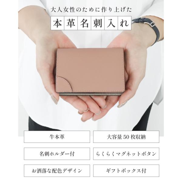 名刺入れ レディース 本革 名刺ケース 革 女性用 マグネット 大容量 カードケース 二つ折り コンパクト バイカラー 可愛い 薄型 ユニセックス メンズ 薄い 50枚
