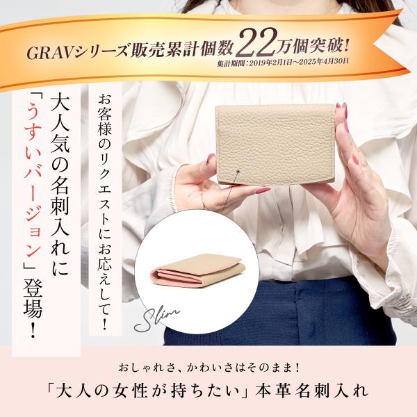 名刺入れ GRAV 薄型 レディース 薄いのに大容量 30枚収納 カードケース 本革 名刺を整理できる仕切り板付き 取り出しやすい ギフト プレゼント